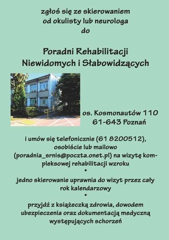 (polecamy broszurę nr 1 oraz broszurę nr 2) oraz rehabilitacji osób z dysfunkcją wzroku poprzez działalność wydawniczą.